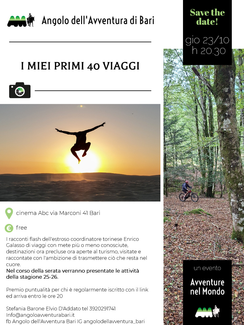 Per un saluto estivo con tutti gli amici dell’ Angolo di Bari, abbiamo pensato ad un apericena tra gli ulivi di Corato (BA). Ancora pochi posti disponibili! Vi aspettiamo numerosi! E’ richiesta iscrizione al seguente link https://www.viaggiavventurenelmondo.it/eventi/osuyhhhtcn6uf?utm_source=anm&utm_medium=newsletter-angoli&utm_campaign=nl-an-bari-20250619